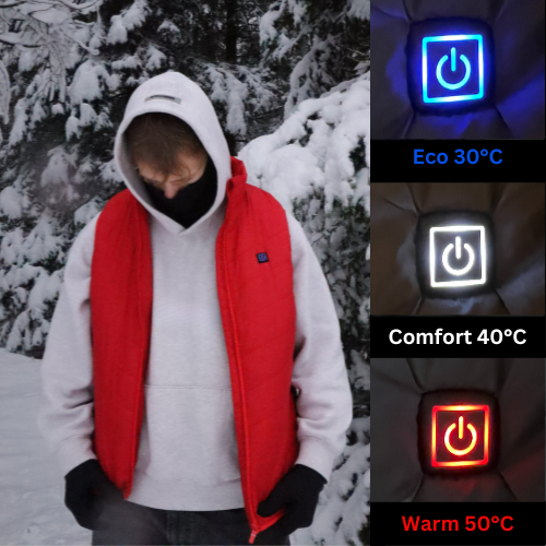 Stay comfortable all year round! Our vest has 3 different heat modes to match the weather.